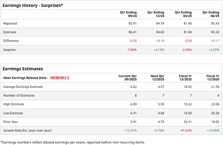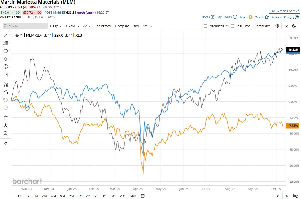 Earnings Preview: What to Expect From Martin Marietta Materials' Report![]() Raleigh, North Carolina-based Martin Marietta Materials, Inc. (MLM) is a natural resource-based building materials company. The company supplies aggregates and building materials to the construction industry. With a market cap of $38.4 billion, Martin Marietta’s operations span the United States and internationally. The building materials giant is set to unveil its third-quarter results before the market opens on Wednesday, Oct. 29. Ahead of the event, analysts expect MLM to deliver a profit of $6.62 per share, up 12% from $5.91 per share reported in the year-ago quarter. The company has a mixed earnings surprise history. While it missed the Street’s bottom-line estimates twice over the past four quarters, it missed the projections on two other occasions. For the full fiscal 2025, MLM’s EPS is expected to come in at $18.92, down 41.6% from $32.41 reported in 2024. While in fiscal 2026, its earnings are expected to grow 14% year-over-year to $21.56 per share. ![]() MLM stock prices have soared 19.3% over the past 52 weeks, notably outpacing the Materials Select Sector SPDR Fund’s (XLB) 6.7% decline and the S&P 500 Index’s ($SPX) 16.3% returns during the same time frame. ![]() Martin Marietta Materials’ stock prices observed a marginal gain in the trading session following the release of its mixed Q2 results on Aug. 7. The quarter was marked with sustained pricing momentum and effective cost management. The company reported record quarterly aggregate revenues; its topline for the quarter inched up 2.7% year-over-year to $1.8 billion, but fell 33 bps below the Street’s expectations. Meanwhile, driven by improvement in margins and decrease in the number of outstanding shares, the company’s EPS soared 14.1% year-over-year to $5.43, beating the consensus estimates by 2.1%. Analysts remain optimistic about the stock’s long-term prospects. MLM has a consensus “Moderate Buy” rating overall. Of the 20 analysts covering the stock, 12 suggest “Strong Buys,” one advises “Moderate Buy,” and seven recommend “Holds.” As of writing, the stock is trading slightly below its mean price target of $645.69. On the date of publication, Aditya Sarawgi did not have (either directly or indirectly) positions in any of the securities mentioned in this article. All information and data in this article is solely for informational purposes. For more information please view the Barchart Disclosure Policy here. |